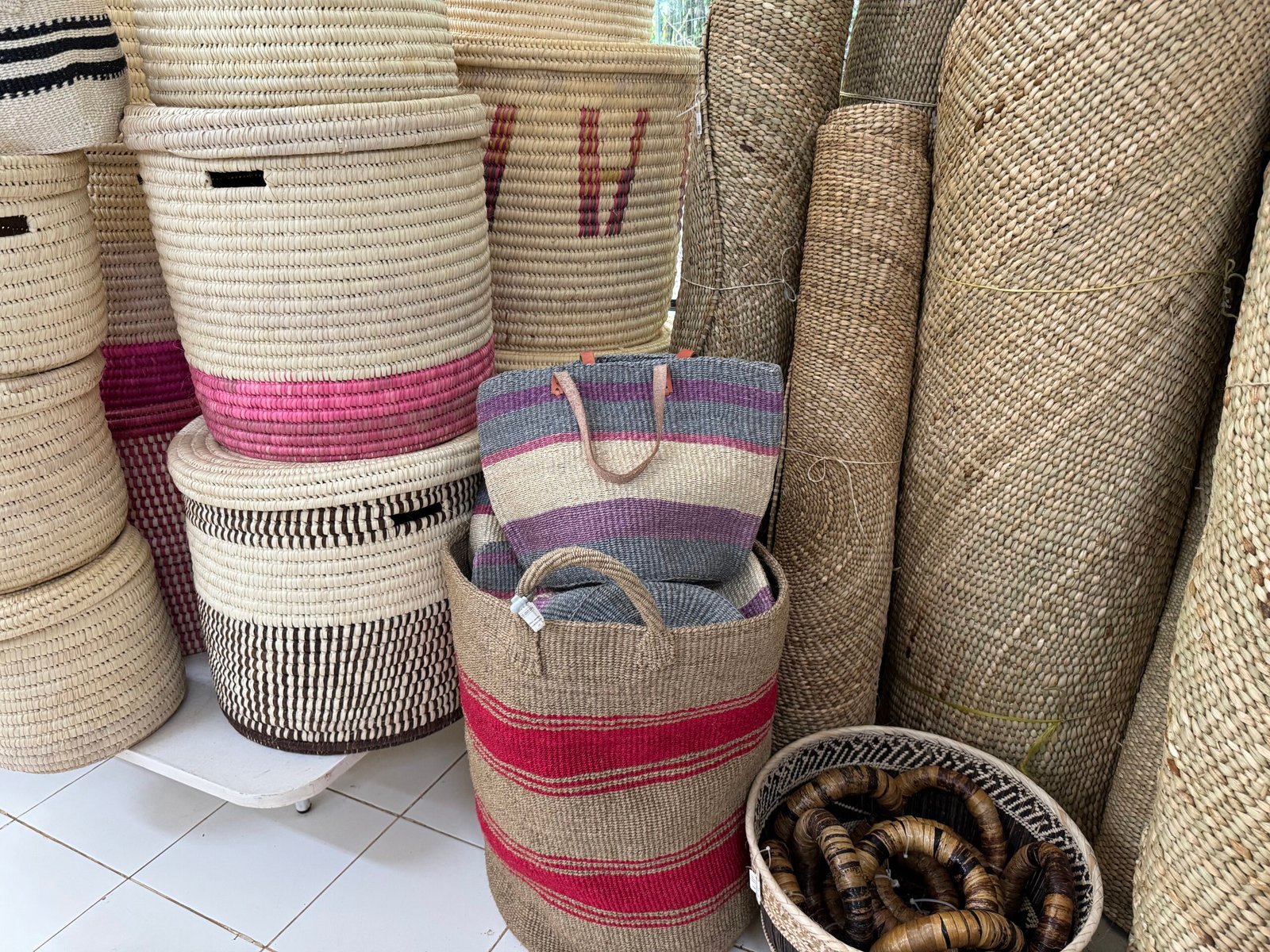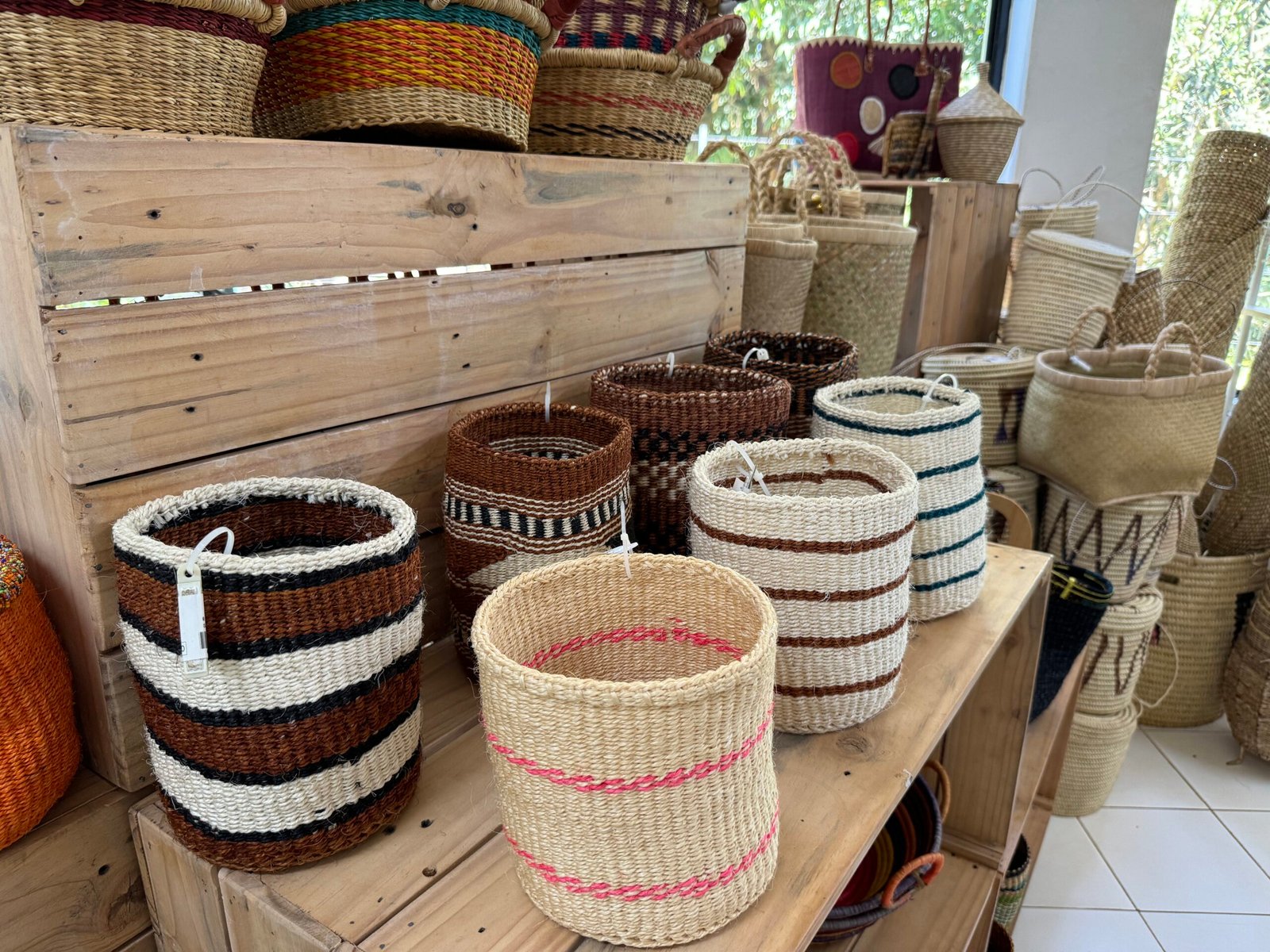 We have a large selection of fun, colourful and hand-woven baskets in our section downstairs.